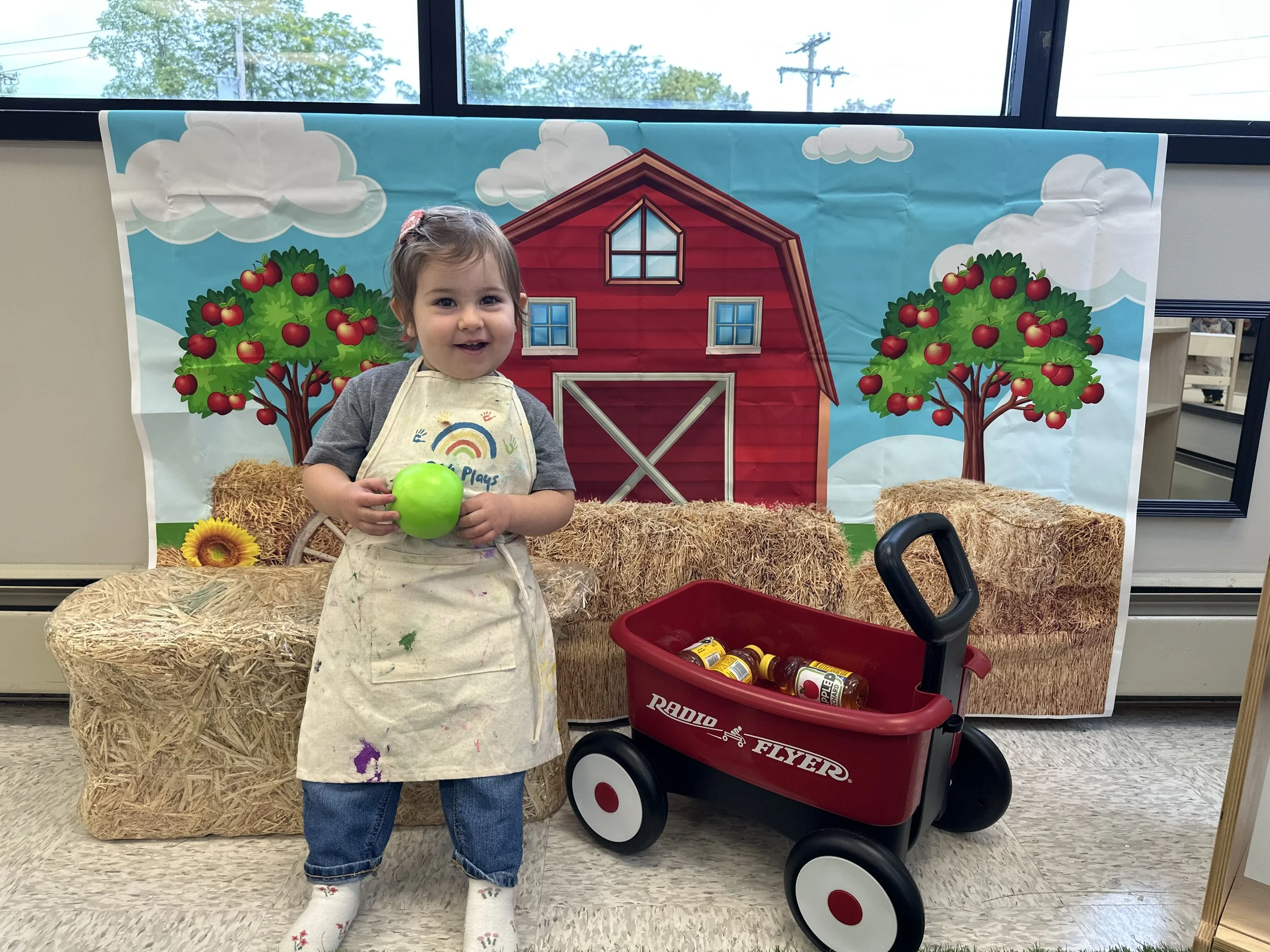 Every class includes a themed dramatic play setup that changes weekly. One week it might be a farmers market or a fire station, the next a bakery or doctor’s office — all designed to spark storytelling and extend the weekly theme in meaningful ways.